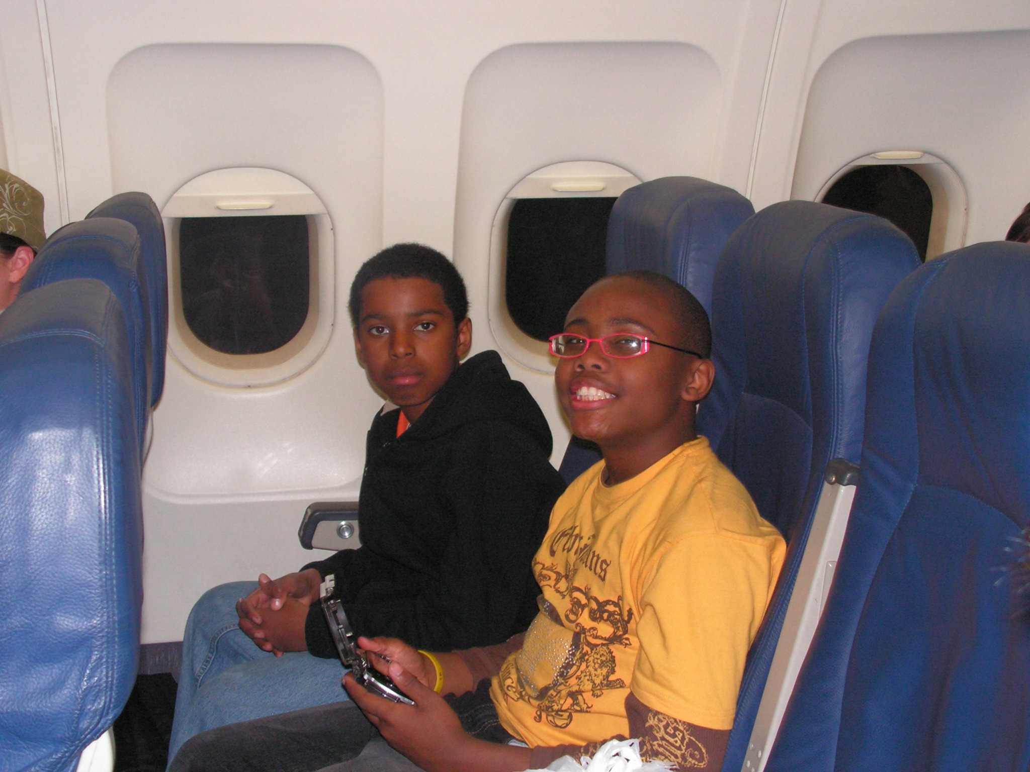 By Senay Alkebu-lan (6th grade) On April 5th, we departed from the SFO airport at about 10:15 pm. I was extremely excited to fly for I haven't flown in a long time. I couldn't wait to get on the plane. At the airport, we took pictures with families and said our goodbyes. I gave hugs to my father and some of the other parents who wished me a good trip. In the lobby, we played PSPs and ate a small meal. We had to turn off all electronics until gaining high altitude. As soon as the lights went off, we broke our PSP's out. Some of the other students and I played our PSP's wireless on Midnight Club 3 which is a car racing/cruising game. Dante` and I were in the same row along with a kind woman sitting close to the aisle. I said ,"Welcome to U.S. Airways" as sort of a joke. Dante` helped me beat my "Lego Indiana Jones" video game which was great. We flew over rivers and massive lakes which was possibly the Sierra Nevada or the Rocky Mountains. Later on, after my PSP battery died, I took a nap using the blanket provided on the plane. I enjoyed the flight for my first time on a plane in three years. We touched down at the Philadelphia Airport at about 7:30 the next morning. There, I had the best plain bagel with whipped creme of my entire life. After boarding the plane, we had to wait a long time because of a waiting line of planes to take off on the runway. I then went to sleep. When I woke up, we were on the ground moving forward. "We are finally moving", I said. "We just landed. This is D.C. Brothuh", Baba Jahi replied to me. I missed the whole flight, but I had a long week ahead of me. I was going to have a good time. |